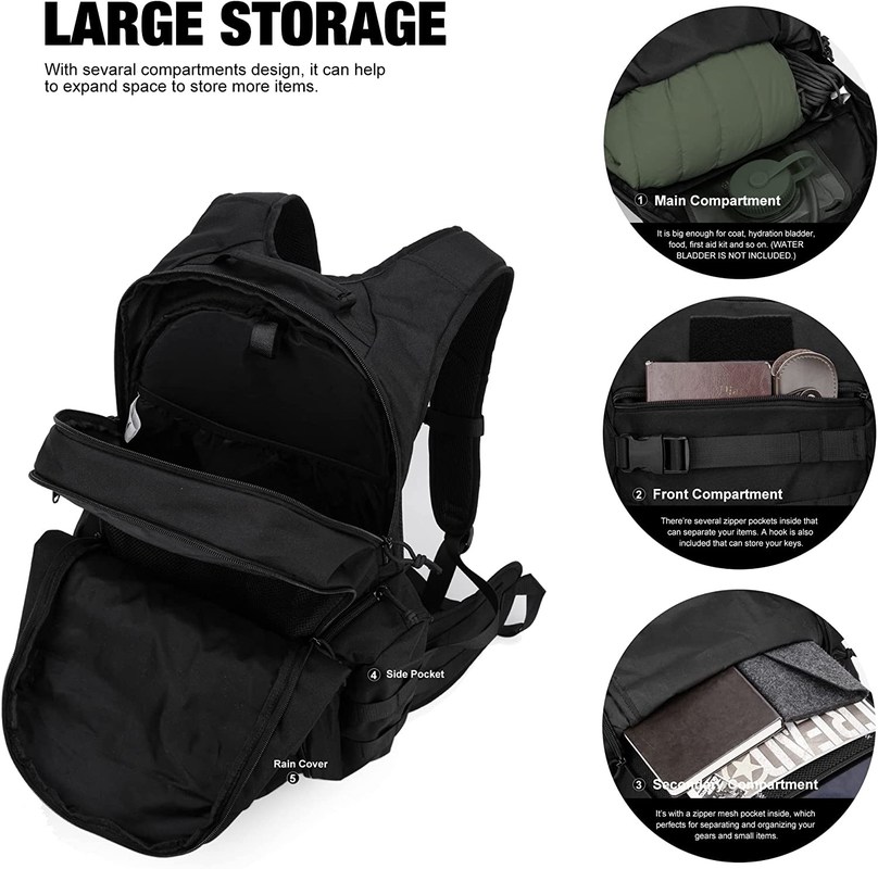 Zaino tattico su ordinazione di 28L Molle con il compartimento di idratazione per gli uomini - neri |