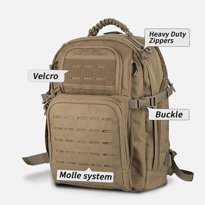 Fornito di un sistema laser tagliato di Molle dalla parte anteriore e dai lati, lo zaino tattico è progettato convenientemente per l'attaccattura gli strumenti tattici supplementari o dei più ingranaggi. Abbondanza dei punti di supporto sull'esterno dello zaino tattico per i sacchetti aggiunti come stati necessari per qualsiasi missione, quali un sacchetto della bottiglia di acqua di due lati (500 ml ciascuno), il sacchetto del walkie-talkie, il sacchetto di pronto soccorso, il sacchetto della torcia ed il sacchetto di varie